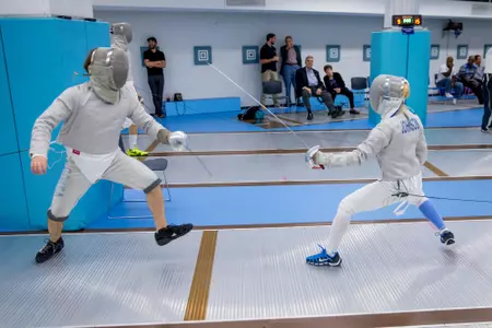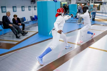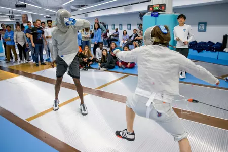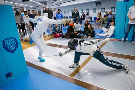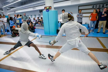Located in Dodge Fitness Center, Columbia’s new one-of-its-kind, state-of-the-art fencing room officially opened in October 2018 with a ribbon-cutting ceremony.