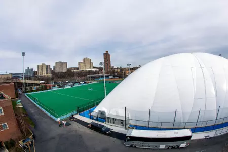 Located at Columbia’s Baker Athletics Complex (corner of Broadway and 218th Street) and adjacent to the Campbell Sports Center, the Bubble at Baker is a heated air-supported dome enclosing Rocco B. Commisso Soccer Stadium and field. The facility also features a brand-new Field Turf Revolution 360 playing surface, which was installed in October 2017. All seven of Columbia’s field sports teams housed at the Baker Athletics Complex (football, men’s soccer, women’s soccer, baseball, softball, field hockey, and lacrosse) receive access to the new indoor practice facility throughout the winter months. The bubble is inflated each winter from December through March.Columbia is one of three Ivy League athletics programs to establish a Seasonal Air-Supported Structure within its athletics facility footprint. The placement of the structure over the wide soccer venue (as opposed to over the football field at Robert K. Kraft Field at Lawrence A. Wien Stadium) will provide Columbia with a large cubic footprint that will accommodate more athletes than a similar bubble on an American football field. The large amount of space provides flexible practice setups for all field sports which comes in handy for Columbia’s spring sports teams, who start competition before the end of New York City winters. This will provide Columbia teams a jump-start to their early season contests.