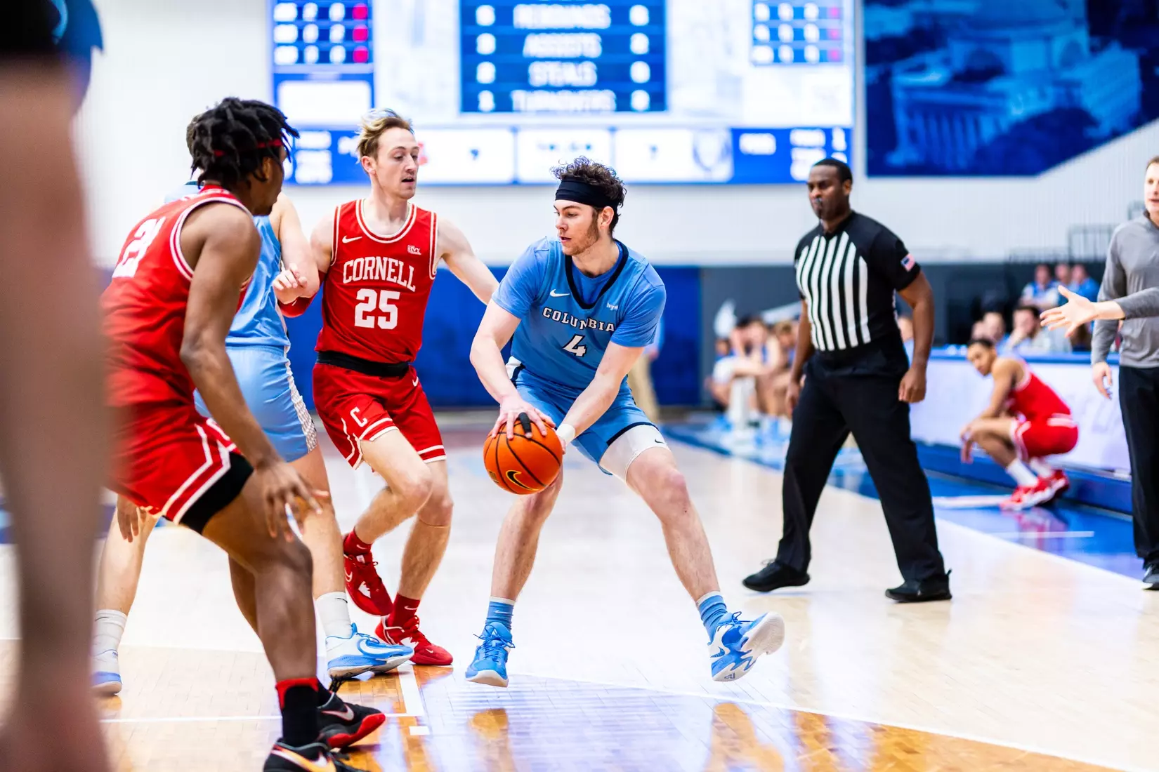 The Lions opened the game with a 3-pointer from De La Rosa and jumped out to a 5-0 lead before Cornell had a layup to take its first lead at 11-10 with 14:06 left in the first half. While Columbia would tie it at 11, Cornell would score 14 unanswered to take a 25-11 lead midway through the first half.