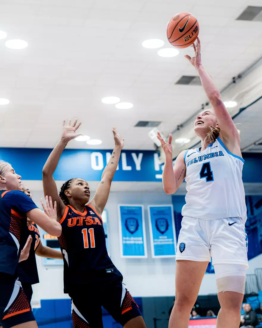 NEW YORK – Fliss Henderson scored the go-ahead basket with five seconds left to lift the Columbia women's basketball team past the University of Texas at San Antonio, 70-65, Saturday afternoon from Schiller Court at Levien Gymnasium.