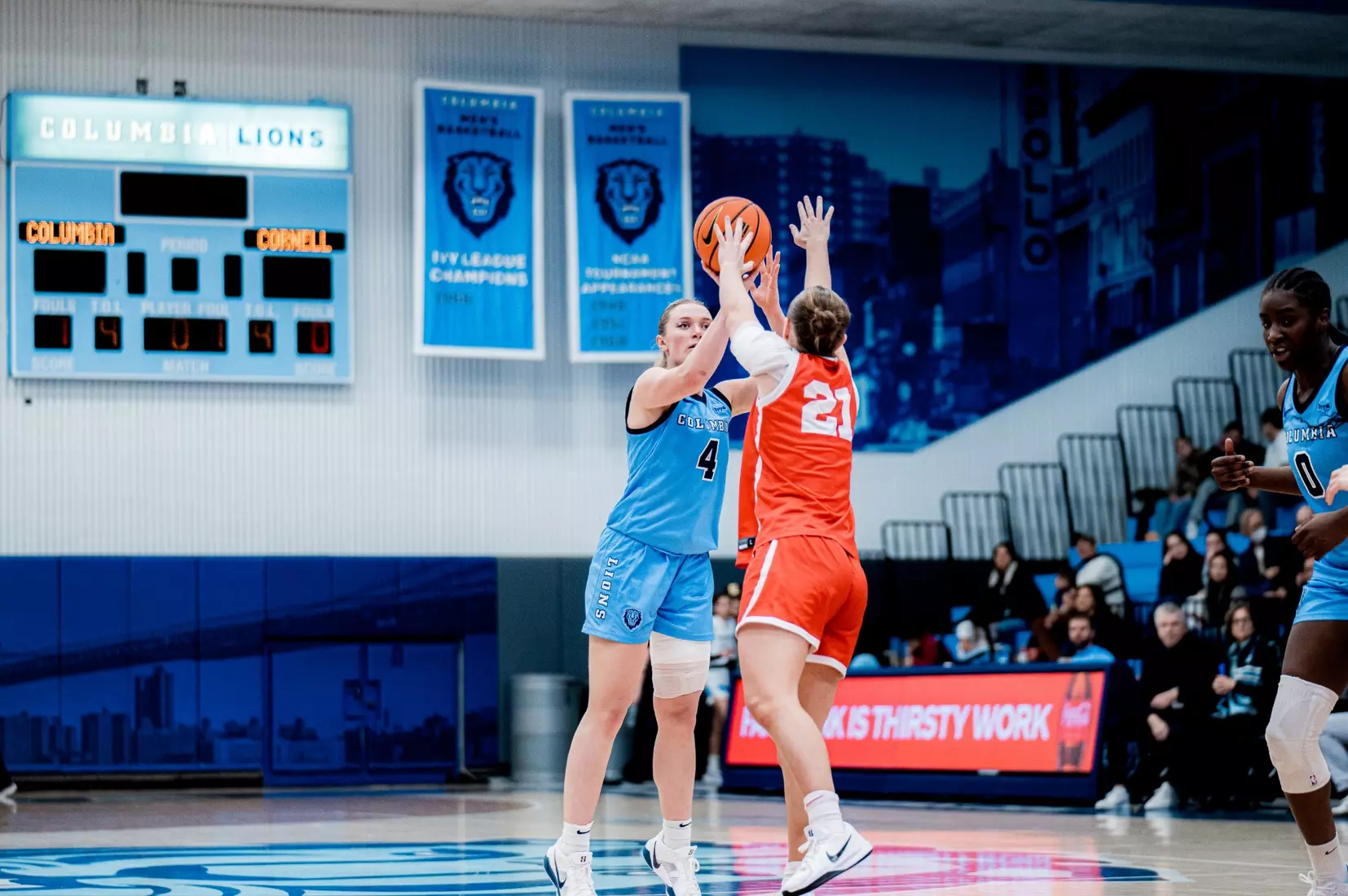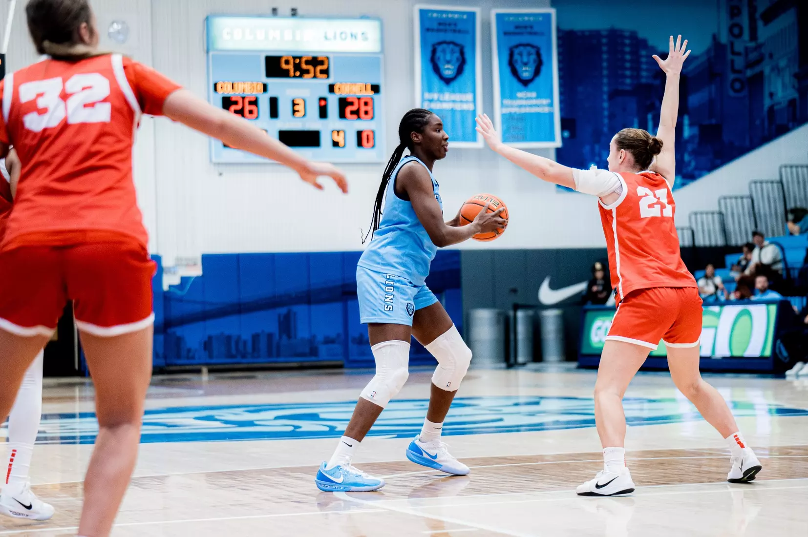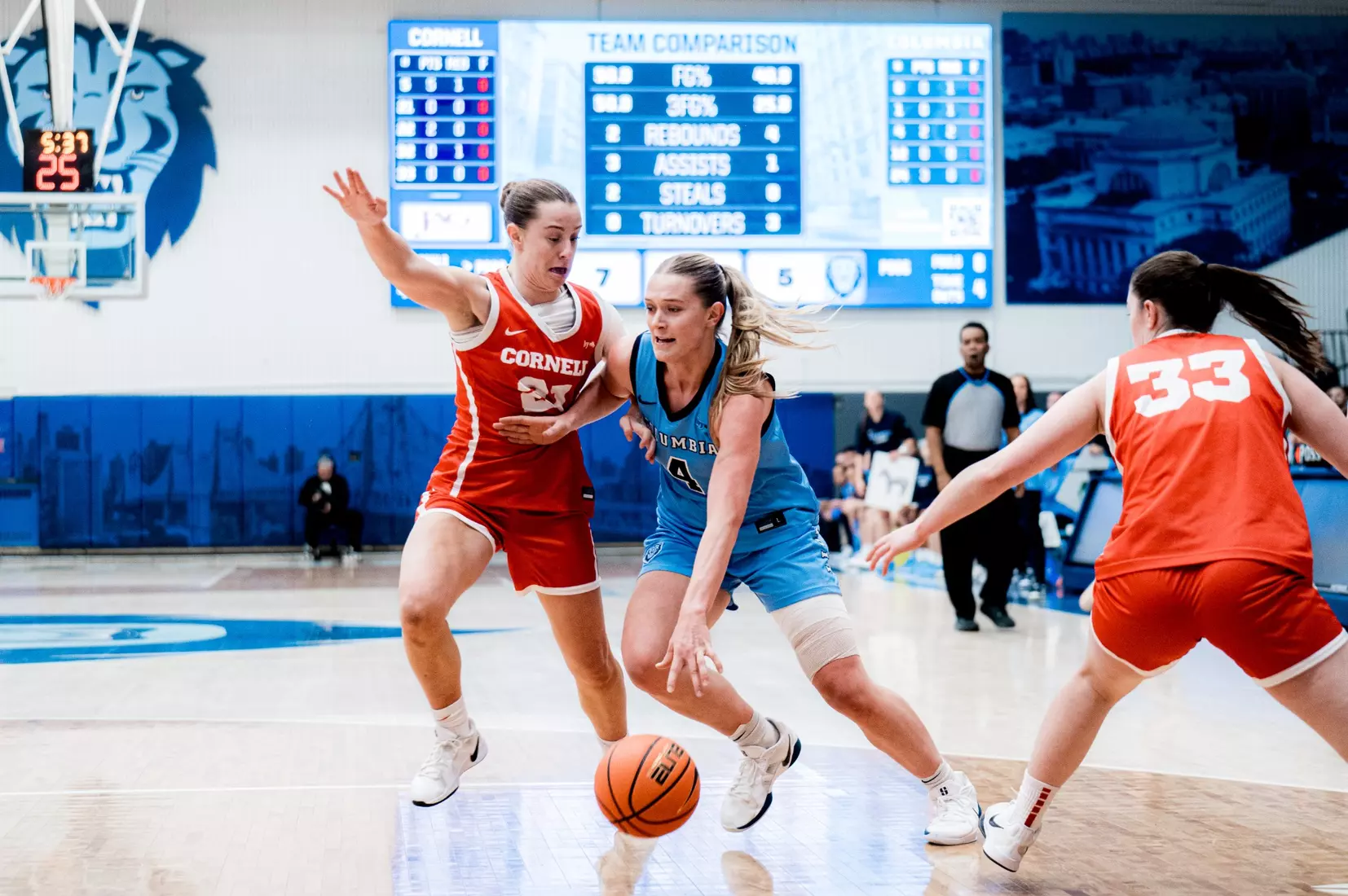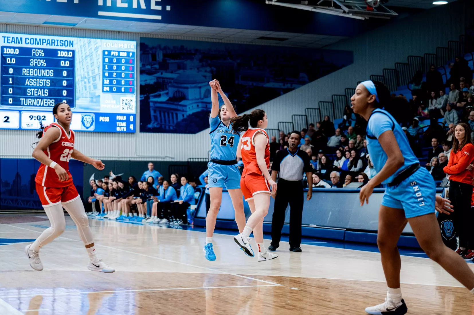 Columbia went 5:32 without scoring in the first quarter, while the Big Red went on an 8-0 run. Four turnovers and five consecutive missed shots made it difficult for the Lions to get going. However, they turned it on, over the final 4:41, going on a 6-0 run to take an 11-10 lead to the second quarter.