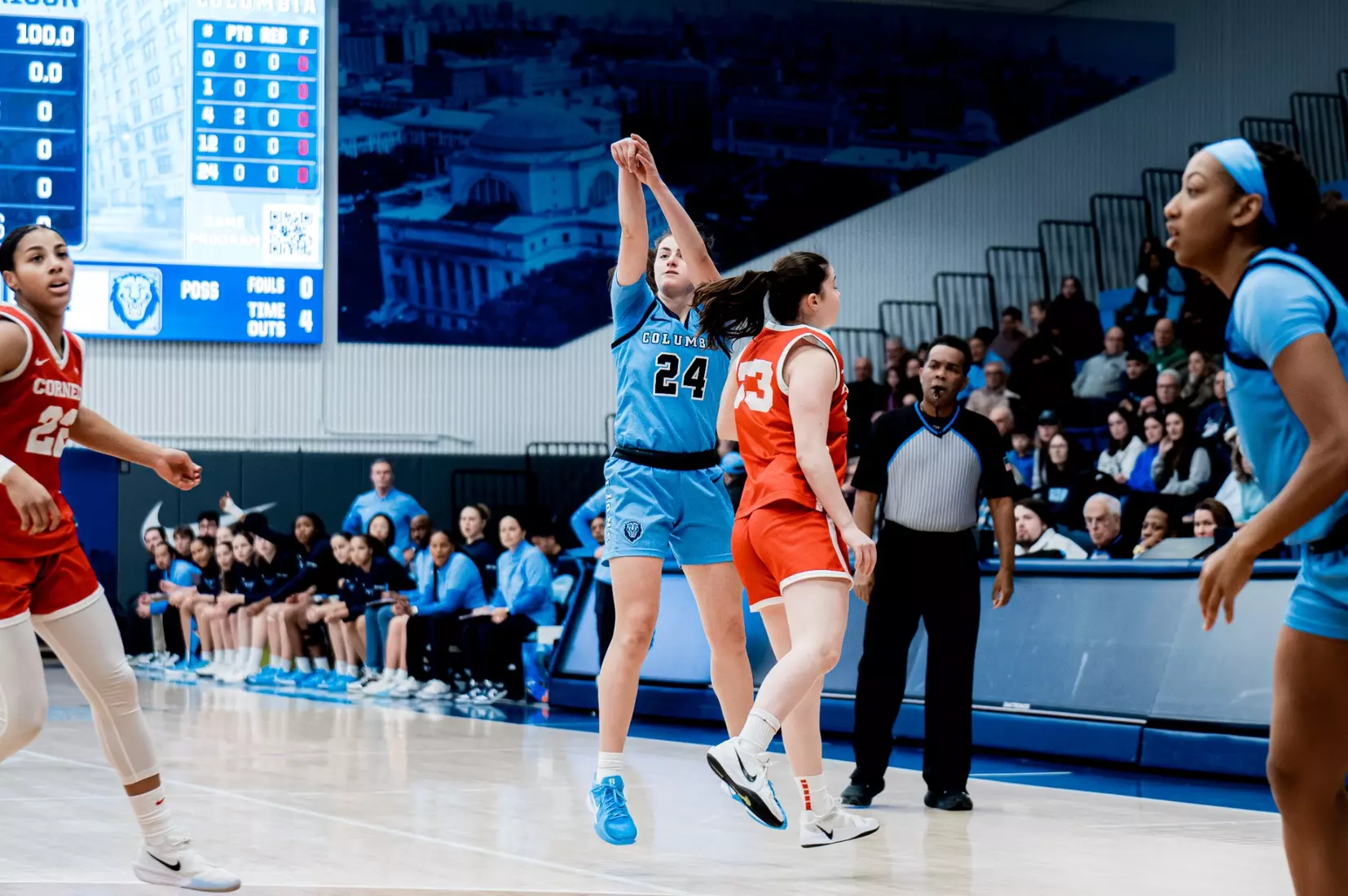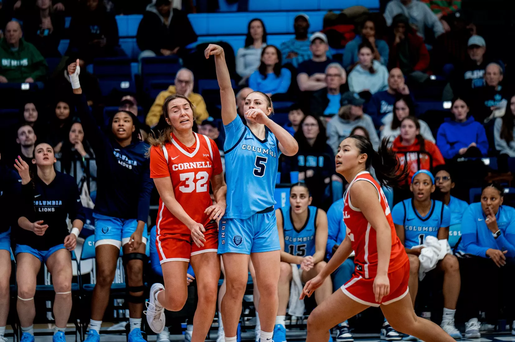 Despite dominating in rebounding, 36-26, points in the paint, 36-16, and fast-break points, 16-4, Columbia (9-5, 0-1 Ivy) succumbed to 6-of-24 three-point shooting against red-hot Cornell (5-8, 1-0 Ivy). The Big Red made 10-of-19 from deep to earn their first series victory in NYC since 2018.